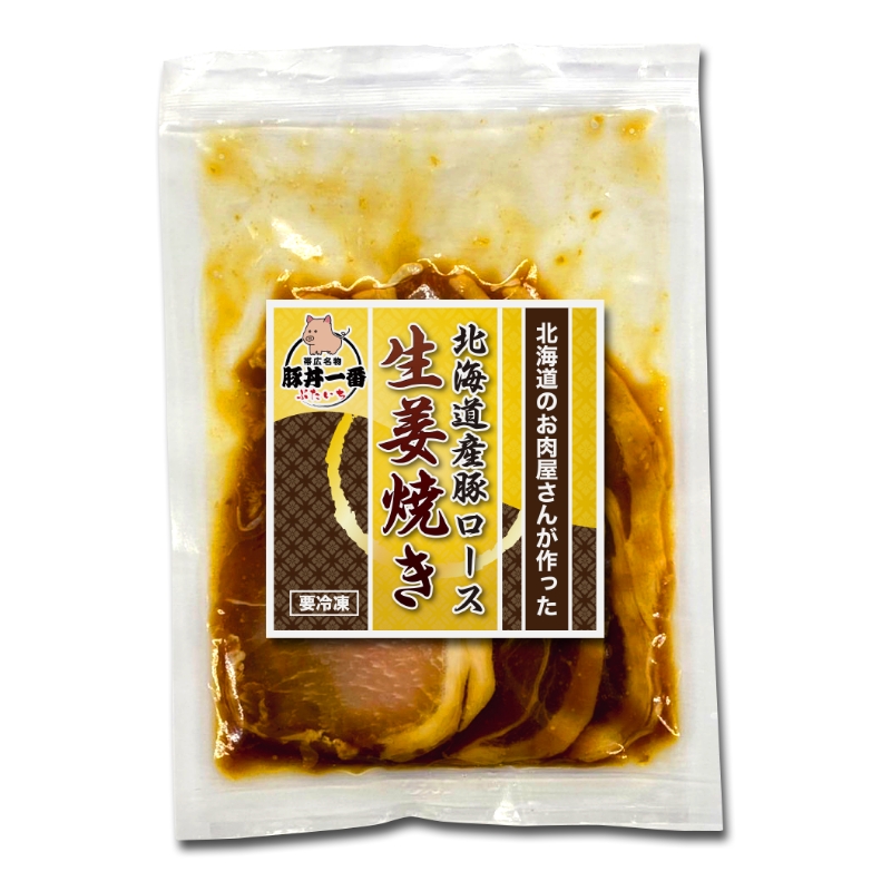 北海道産豚ロースを食べやすいサイズにスライスし、香り高さが人気の国産黄金生姜をベースとしたタレで味付けしました。フライパンで焼くだけの簡単調理で老若男女に人気の豚の生姜焼きをお愉しみいただけます。
