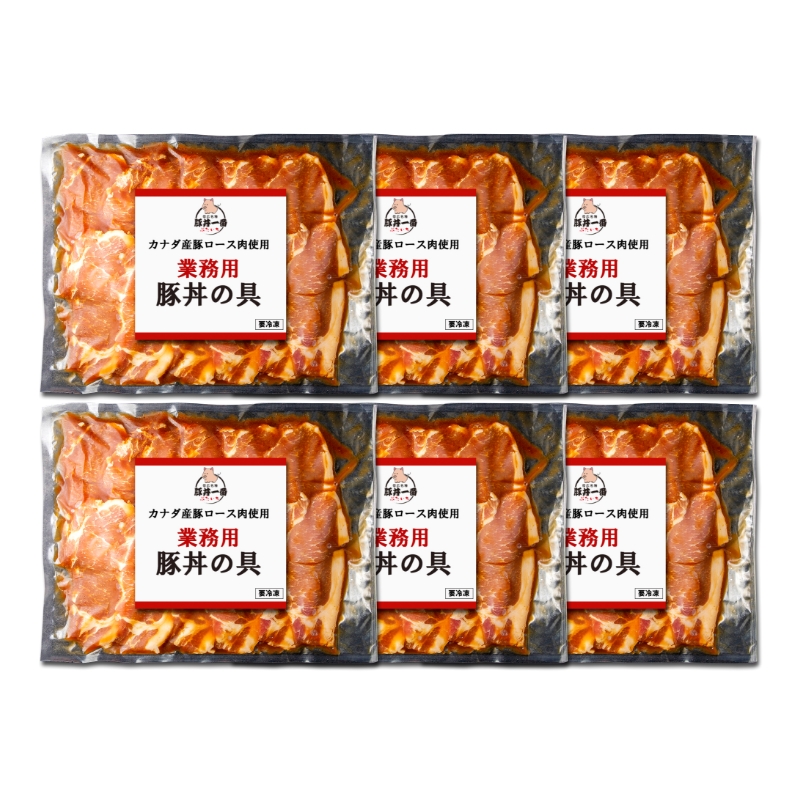 カナダ産の良質な豚ロース肉を使用しています。弊社オリジナルレシピの甘辛豚丼専用ダレで味付けされたお肉をフライパンで焼いてご飯にのせるだけの簡単調理で本格豚丼ができる商品です。ほんのり香る炭火焼風味と甘じょっぱい香りが食欲をそそります。国産原料に比べお手軽に使用しやすい価格帯です。