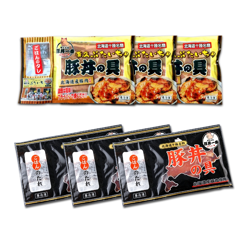 帯広豚丼一番豚丼の具(厚肉150g)×3袋、帯広豚丼一番豚丼の具(薄肉130g)×3袋のセット商品です。
