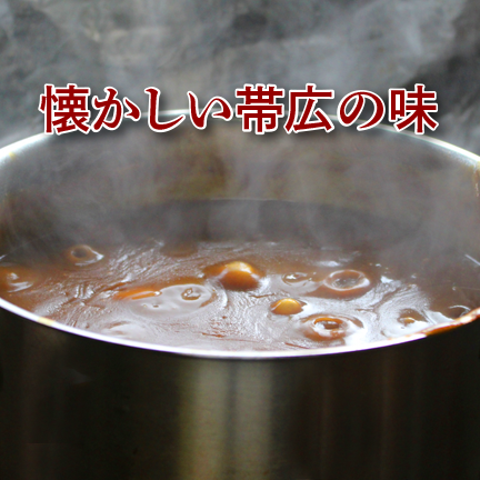 帯広の伝統的なルーカレーです。豚肉、牛肉、玉ねぎの甘みがきいた懐かしい味に仕上げました。